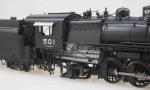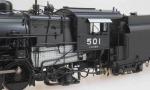 SP&S O-1 class 2-8-2 #501, 1946 era, boiler tube pilot, flat top sand dome, tunnel stack, setback square cab, twin NY air pumps, Elesco steam exhaust ejector, FP Black / Graphite, LTD, LT