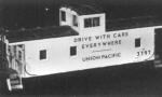 UP CA-3 caboose #3701, 3797, wood beam trucks, interior, FP Yellow ends, White sides/cupola/body, LTD 8' Black letters, LT (#3701 'Make courtesy contagious' #3797 'drive with care everywhere')