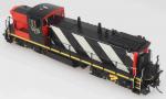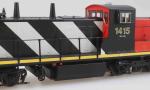 CNR GMD-1 rebuilt #1415 (GR-412a), four wheel Flexi-Coil trucks, sand boxes moved into the hoods, added battery boxes, snowplows anti-climbers and pollution tanks, Radiators w/ winterization housing, short hood now front, reveresed interior, FP Black / Red w/ White stripes, LTD, LT
