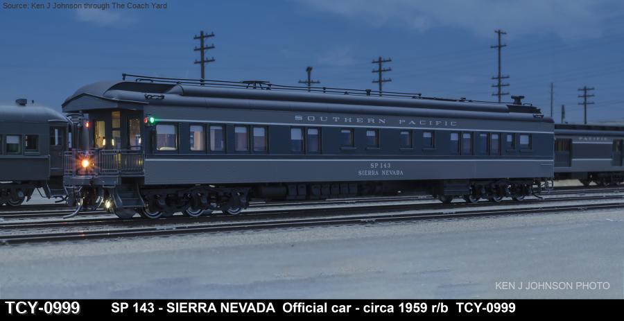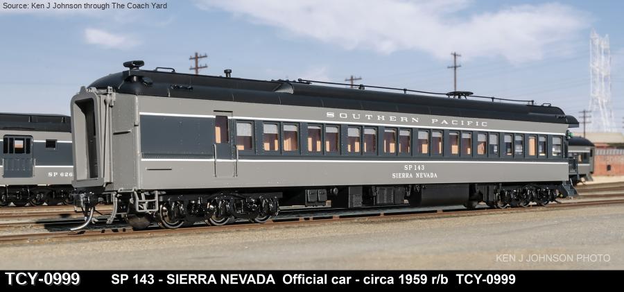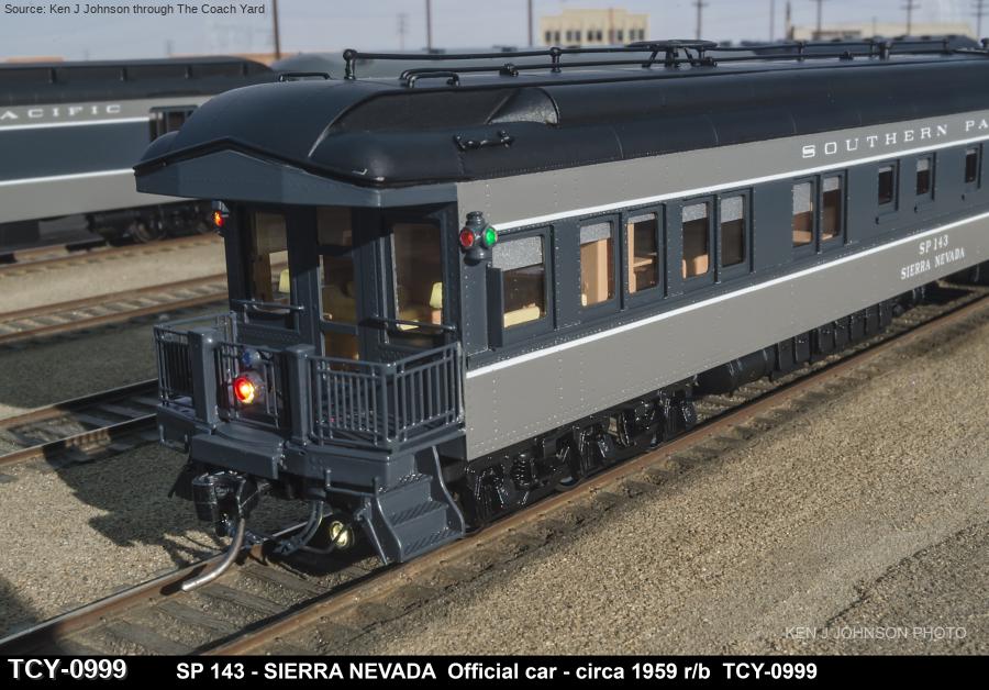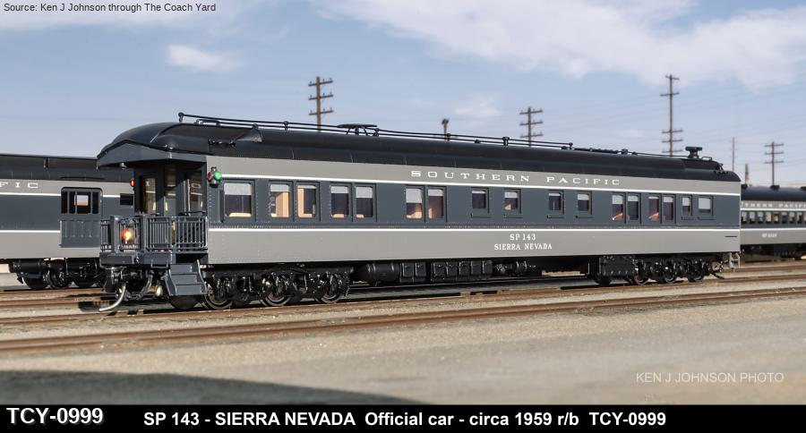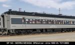 SP Official car #143 'Sierra Nevada', Thermopane windows, Std Marker lamps, SP General Shops rebuilt 1959, FP Two Tone Gray, LTD, LT INT
